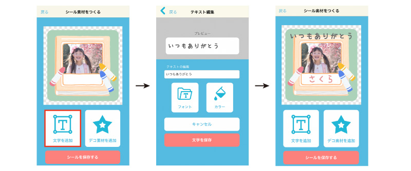 コンビニシール倶楽部で作れる写真シールには文字を入力することもできます。メッセージや名前入りのシールでラッピングすれば、相手により気持ちを伝えることができますね!