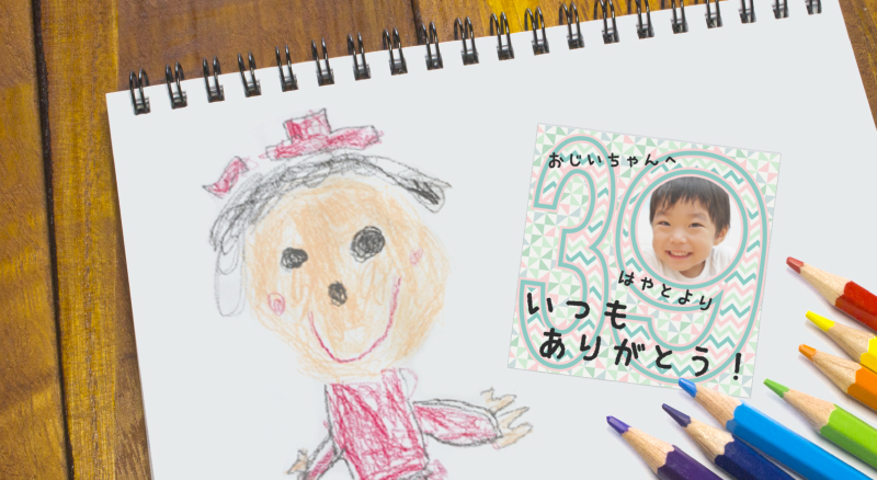 普段なかなか会えないおじいちゃんおばあちゃんへのギフトには写真入りのオリジナルシールを貼るのがおすすめ!コンビニシール倶楽部なら、簡単に写真入りシールが作れちゃいます。