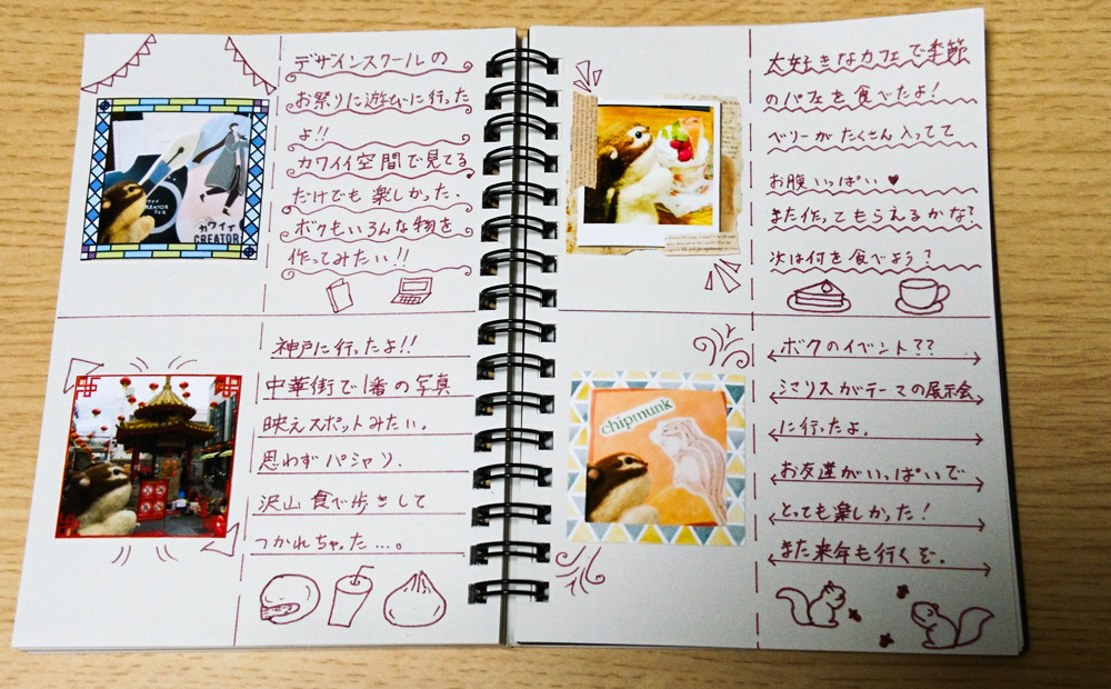 出来上がったシールを使ってぬいぐるみ自身の日記を作ってみました!