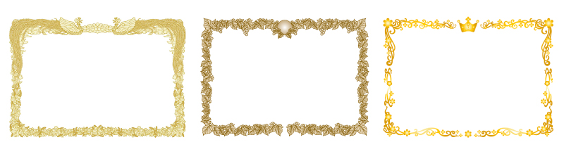 まず、インターネット検索で「賞状」「フレーム」「飾り枠」などのワードで検索すると、フレームの素材が見つかります。