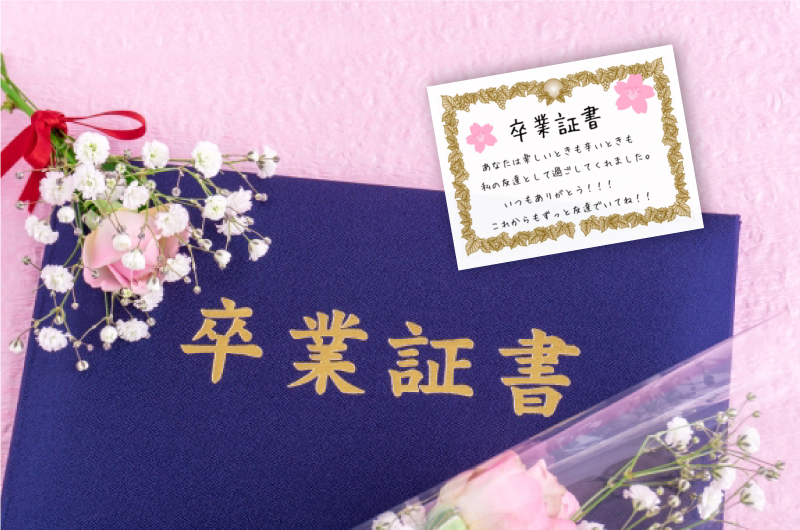 フレームやデコ素材、文字追加機能を活用してオリジナルの卒業証書を作っちゃいましょう!