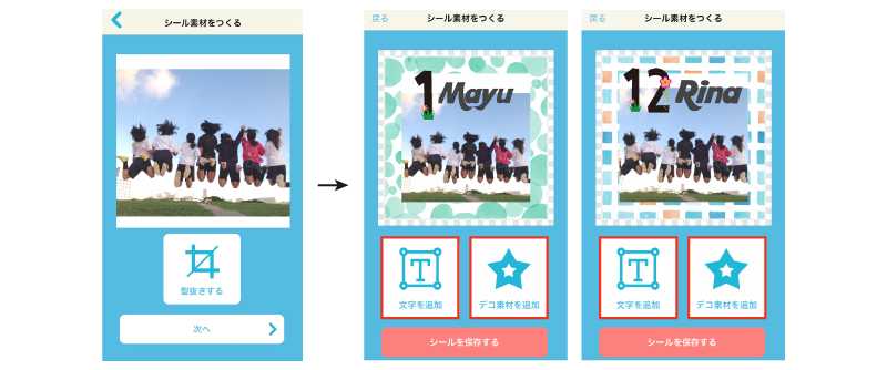 同じ写真を使っているお揃いシールの完成です!ノートや持ち物に貼って、これからの新生活でも仲間の存在を感じることが出来ますね!