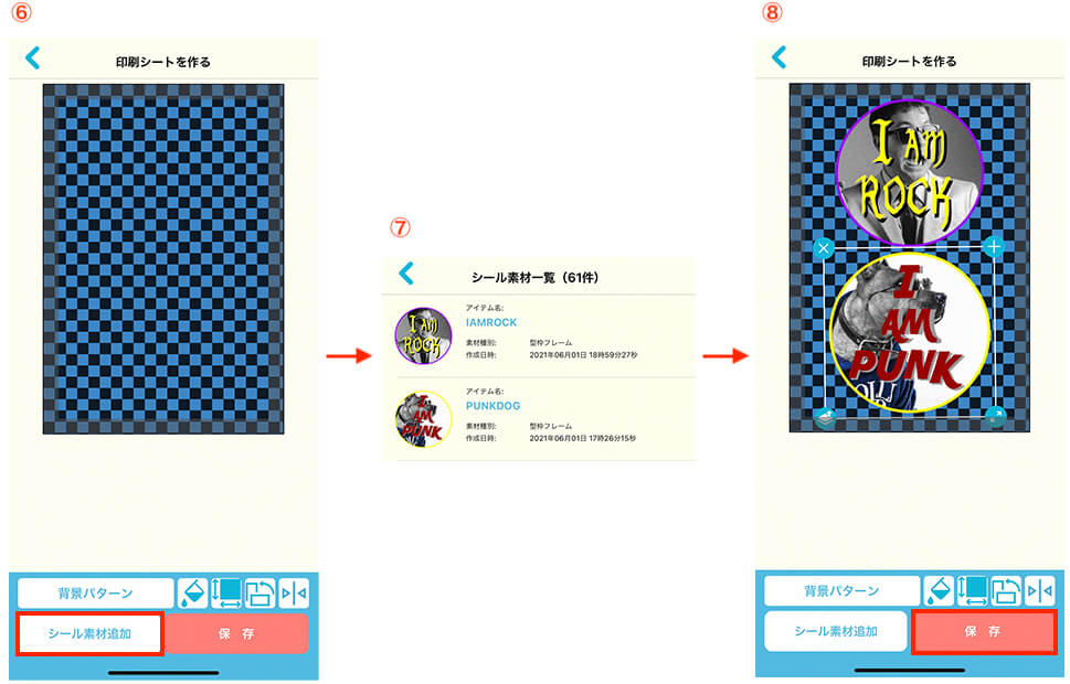 シール素材を作って保存し、そのシール素材を印刷シートに配置。
