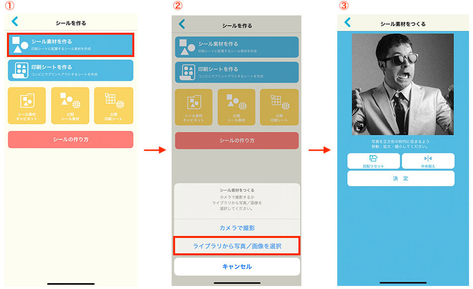 - 小さめのステッカーを作りたい時は【シールを作る】を使ってシール素材を作る