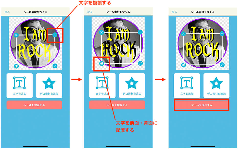 【3】「シール素材追加」から先程作ったシールを選んで配置していきましょう。