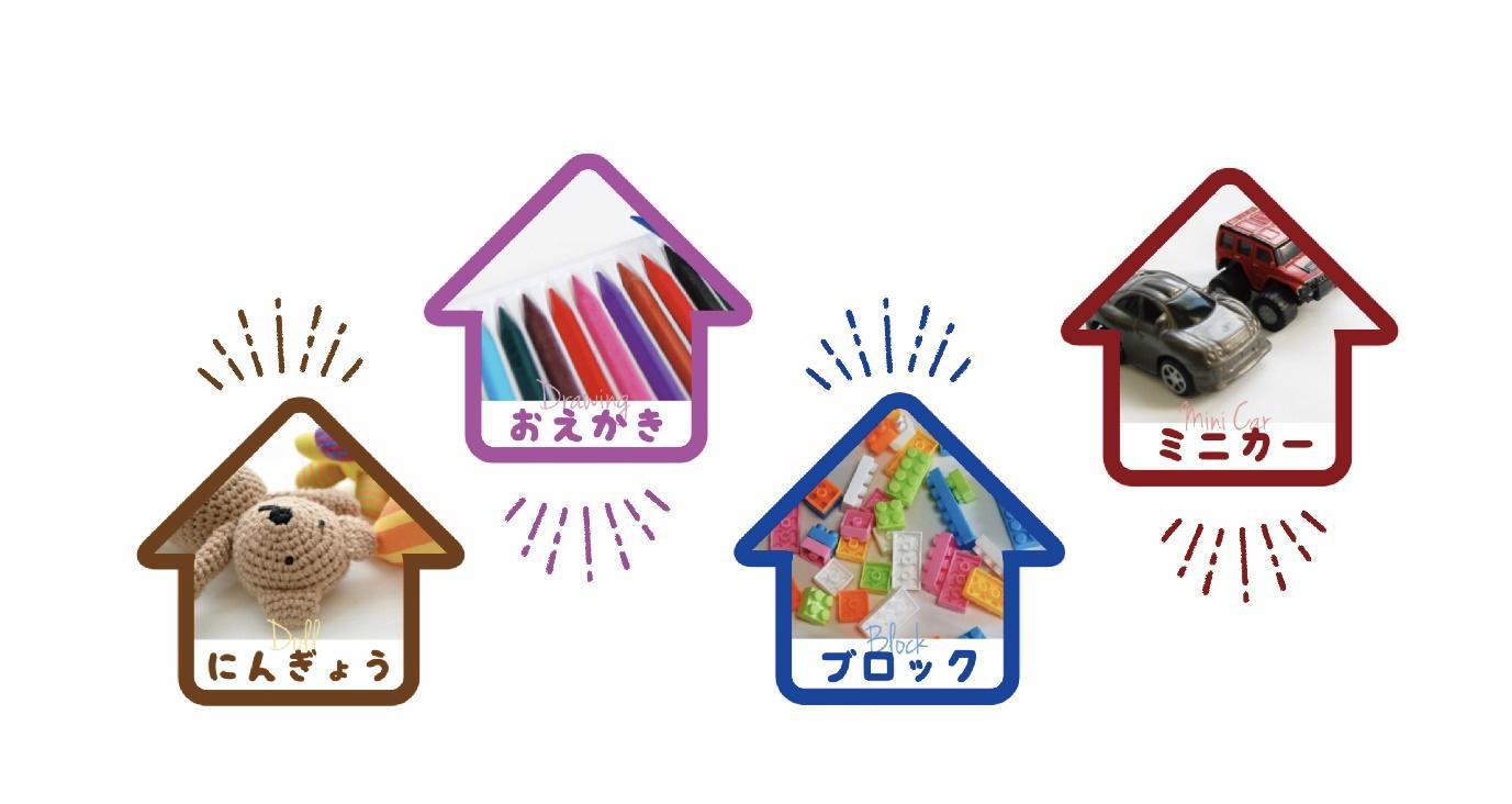 まだ字が読めない子供たちですが、実際に自分たちが使っているおもちゃの写真がラベルになっているので、どこにお片付けしたらよいのか直感的にわかるみたい。