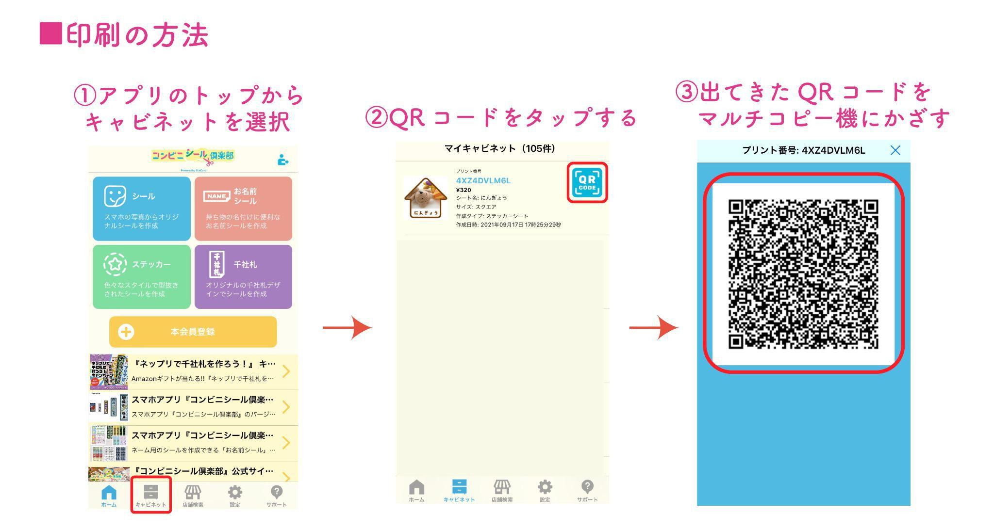 ちなみに印刷する際は、アプリのトップ画面の下にある「キャビネット」から作ったデザインの欄の「QRCODE」をタップしてみてください♪
