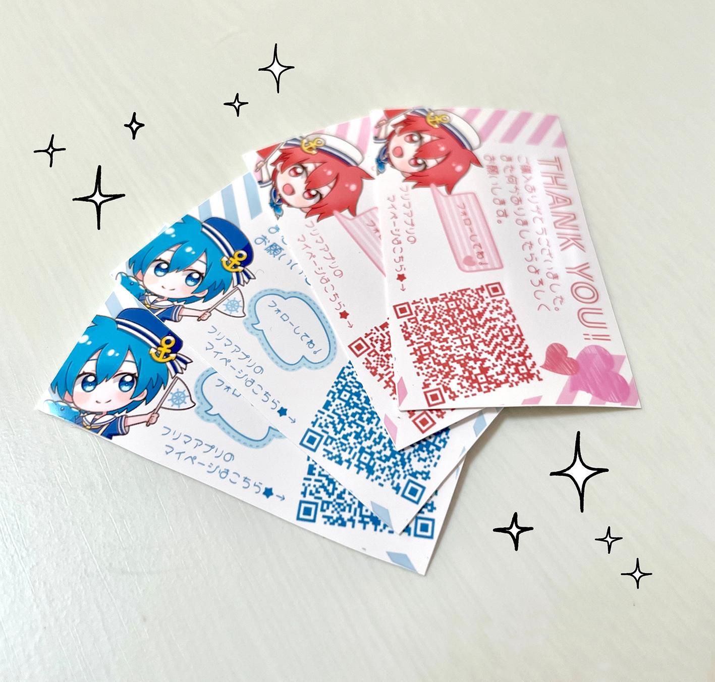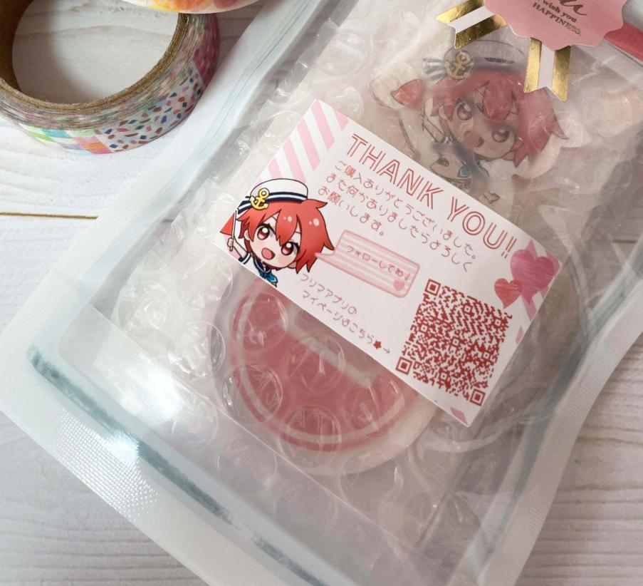 取引する時はお礼の手紙を必ず付けてるんだけど、コンビニシール倶楽部でQRコードを作れる機能が追加されたことを聞いて、フリマアプリのマイページのQRコードを貼り付けておけば、リピーターになってくれるのでは!?と考えたわけです。