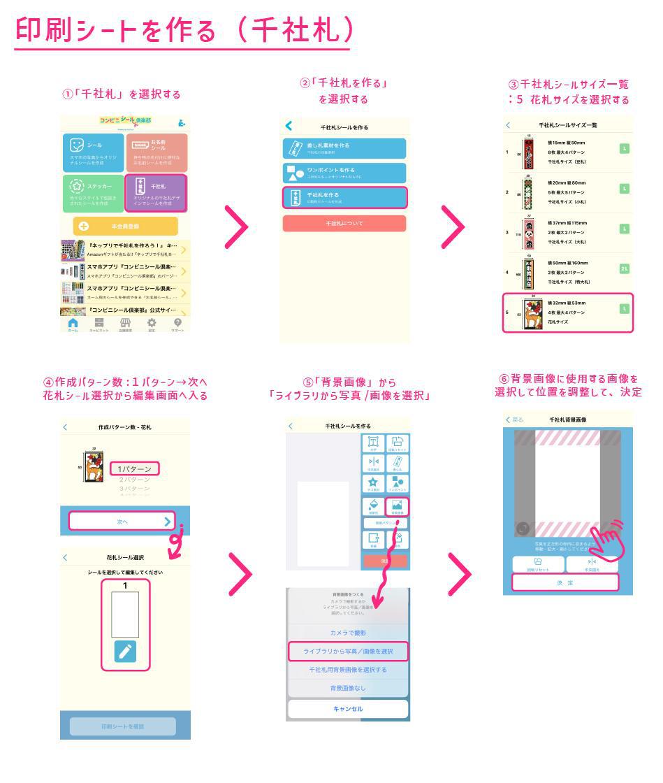 アプリトップ「千社札」>「千社札を作る」>シールサイズは花札サイズを選択しよう。