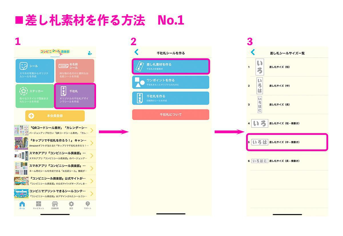 ①ホーム画面に戻り今度は【千社札】から【差し札素材を作る】を選択しましょう。