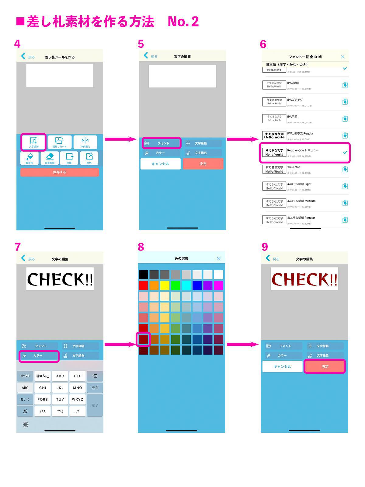 【差し札】から素材を選択し、③と同じ要領で配置していきましょう。