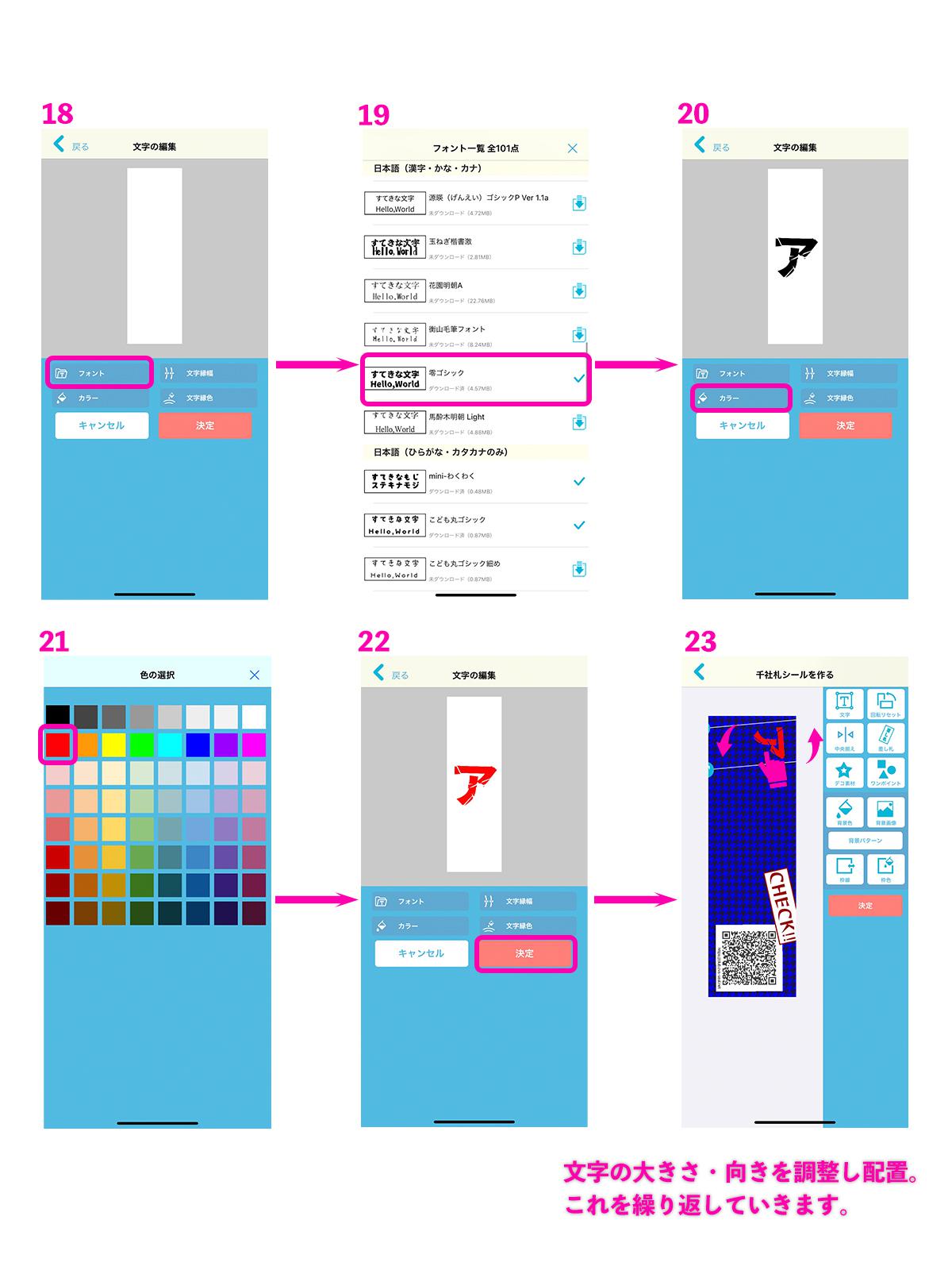 ⑤フォントとカラーを選んで文字を入れていきましょう。