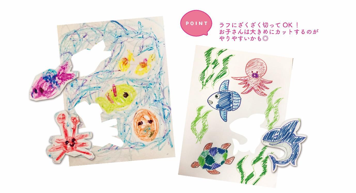- 「おうち水族館シール」の作り方:印刷したらみんなで自由にチョキチョキ。