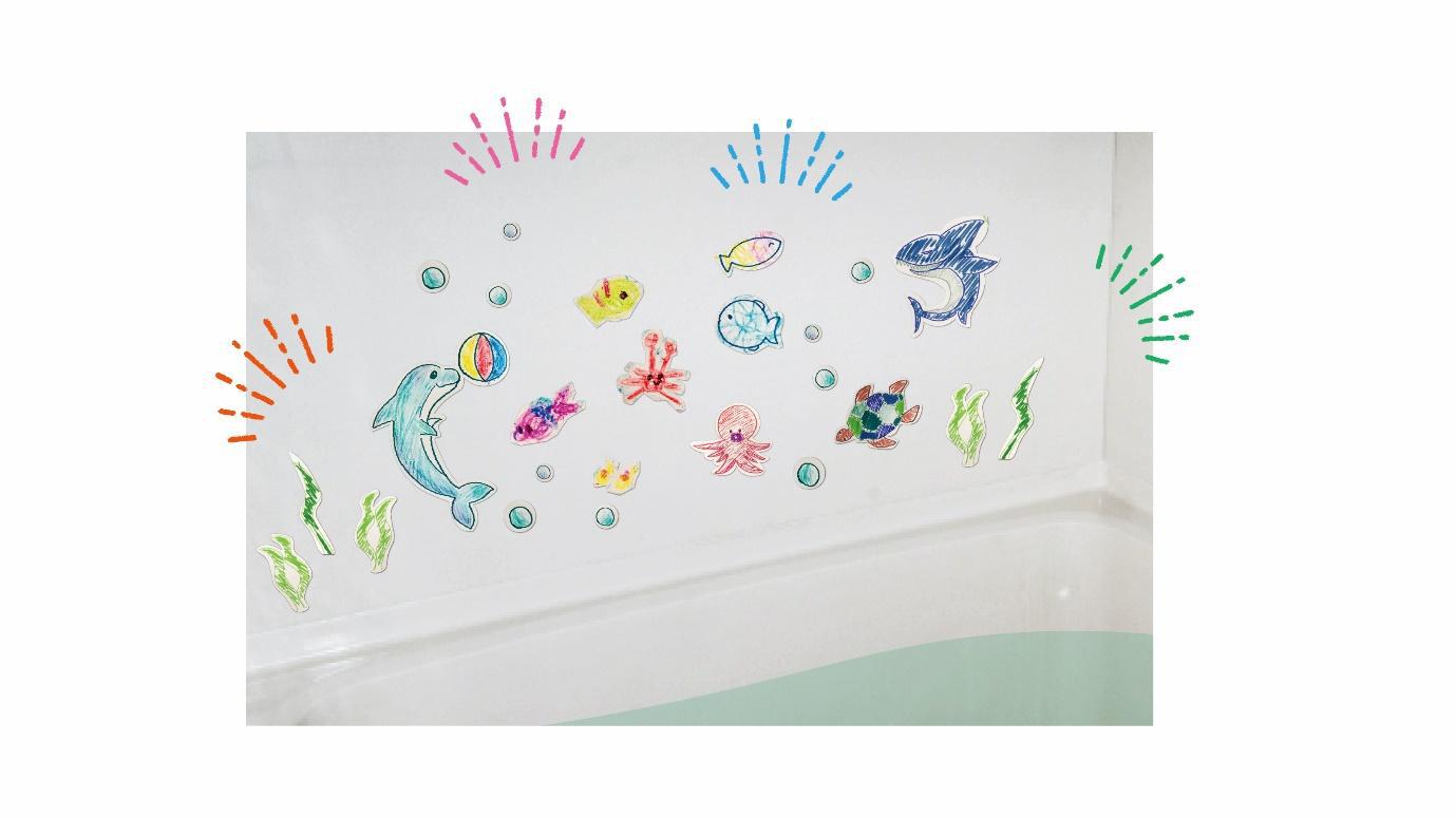 カットが終わったら、お風呂場に自由に貼り付けて【おうち水族館】完成です♪