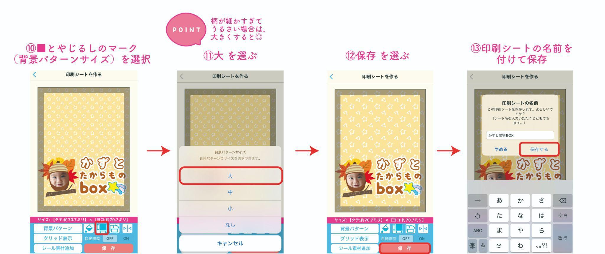 - 背景パターンの柄がうるさいときは、背景パターンサイズで大きさを調整可能♪