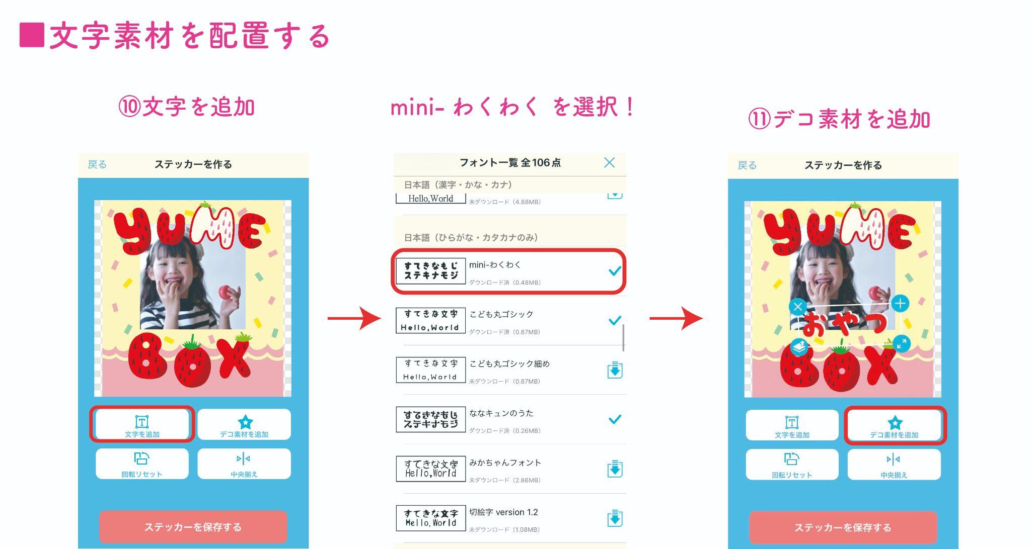 - デコ素材のイラストは、あえて文字にかぶせてデコる技もあり◎