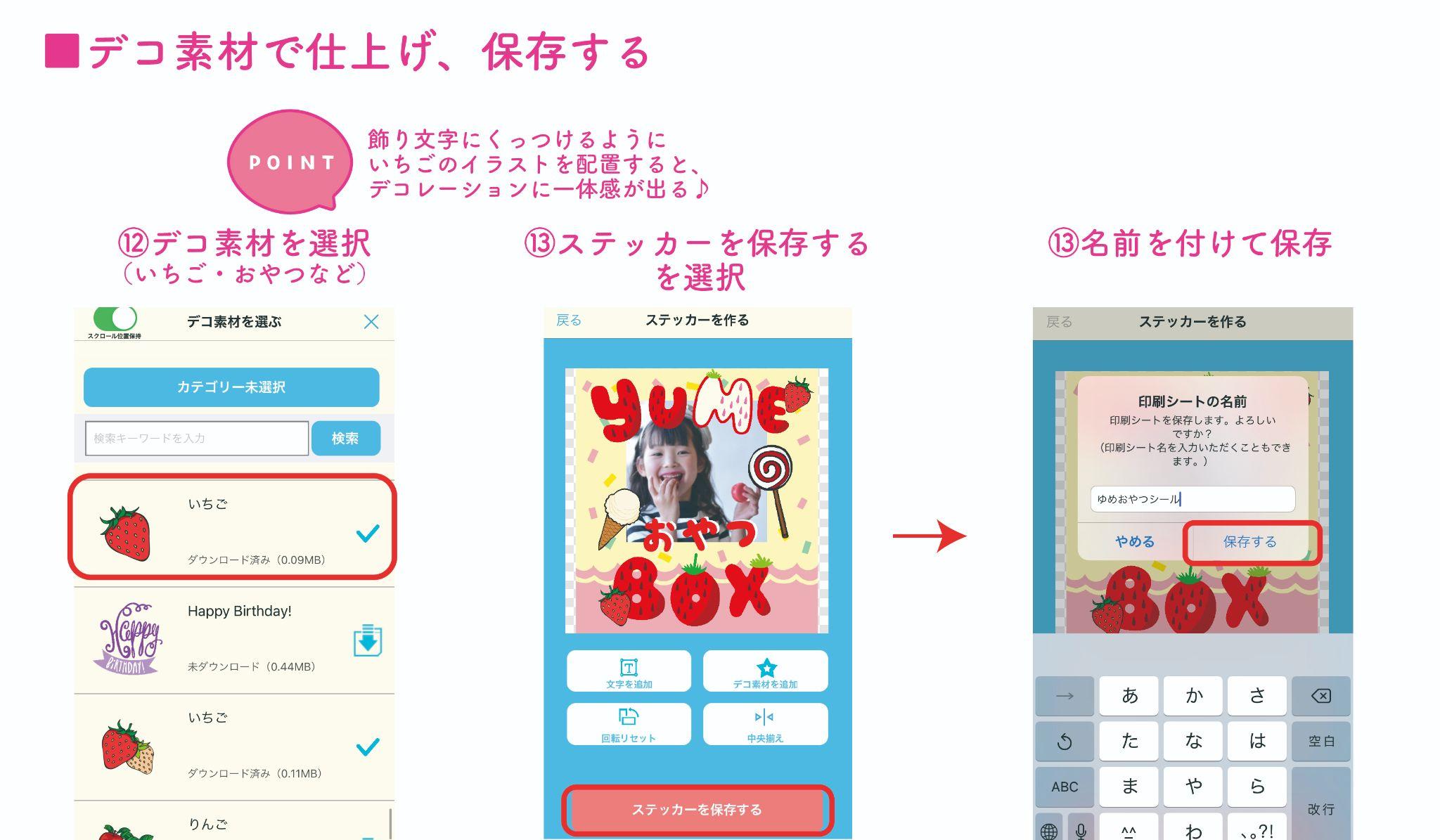 − いちごのかわいいフォントで、おやつBOXラベルを作ろう! −