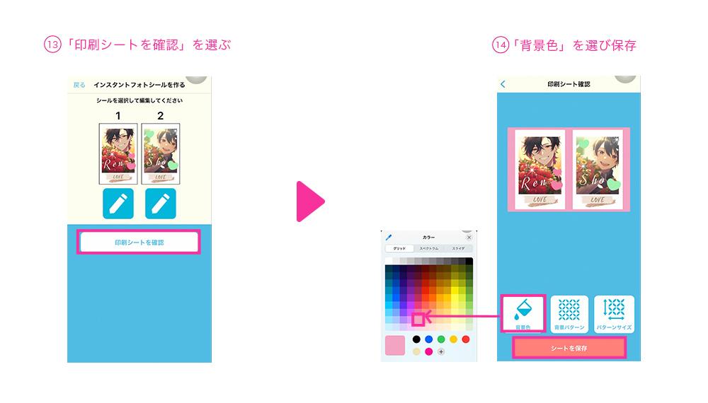 印刷シートの確認画面では、背景色と背景パターンがつけられるよ。