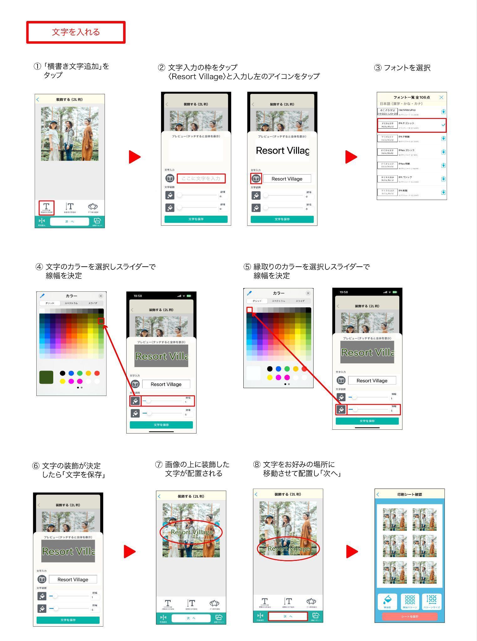 画像の配置だけではなく、文字やデコ素材を入れて画像を装飾することも可能です。