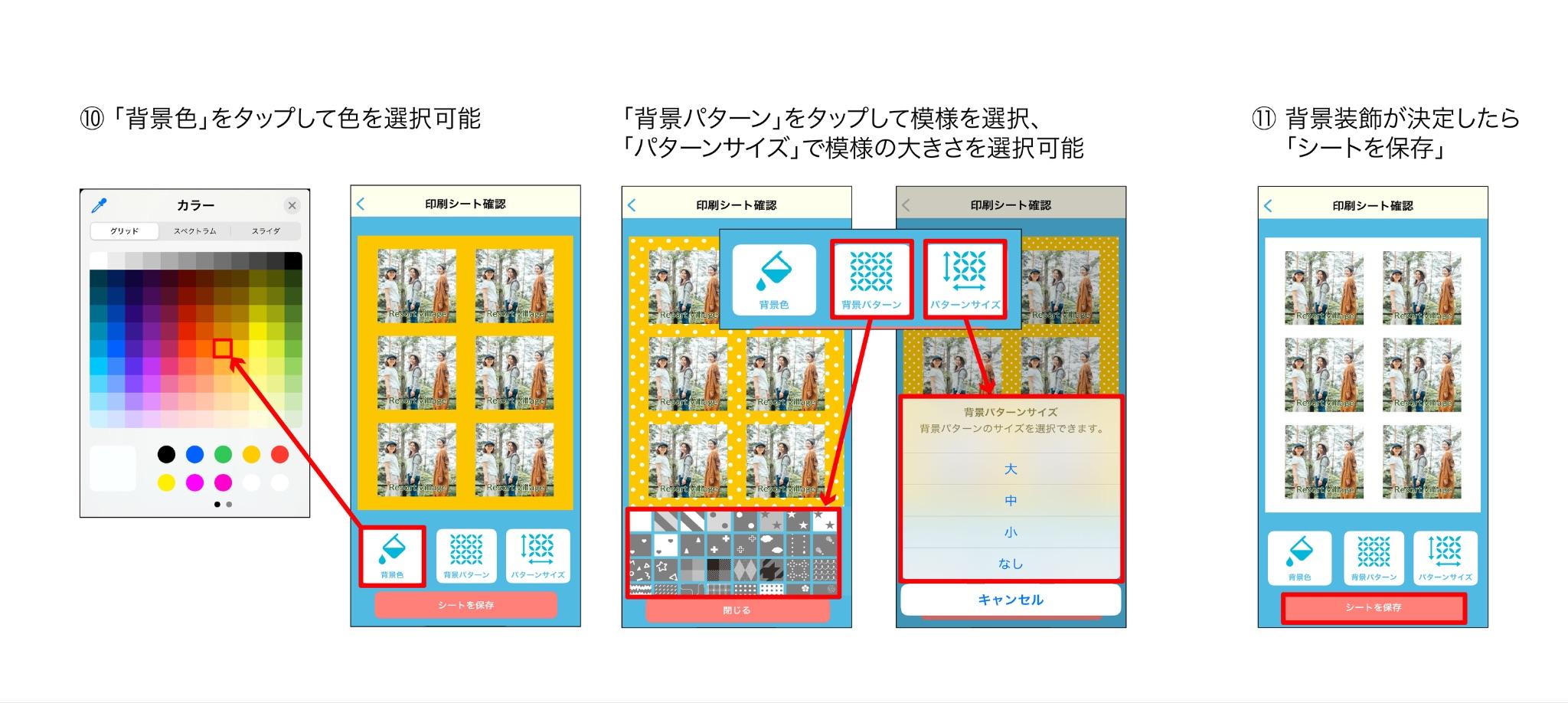 ここでは実際に印刷されるイメージ画像の確認、背景のカスタマイズが可能です。