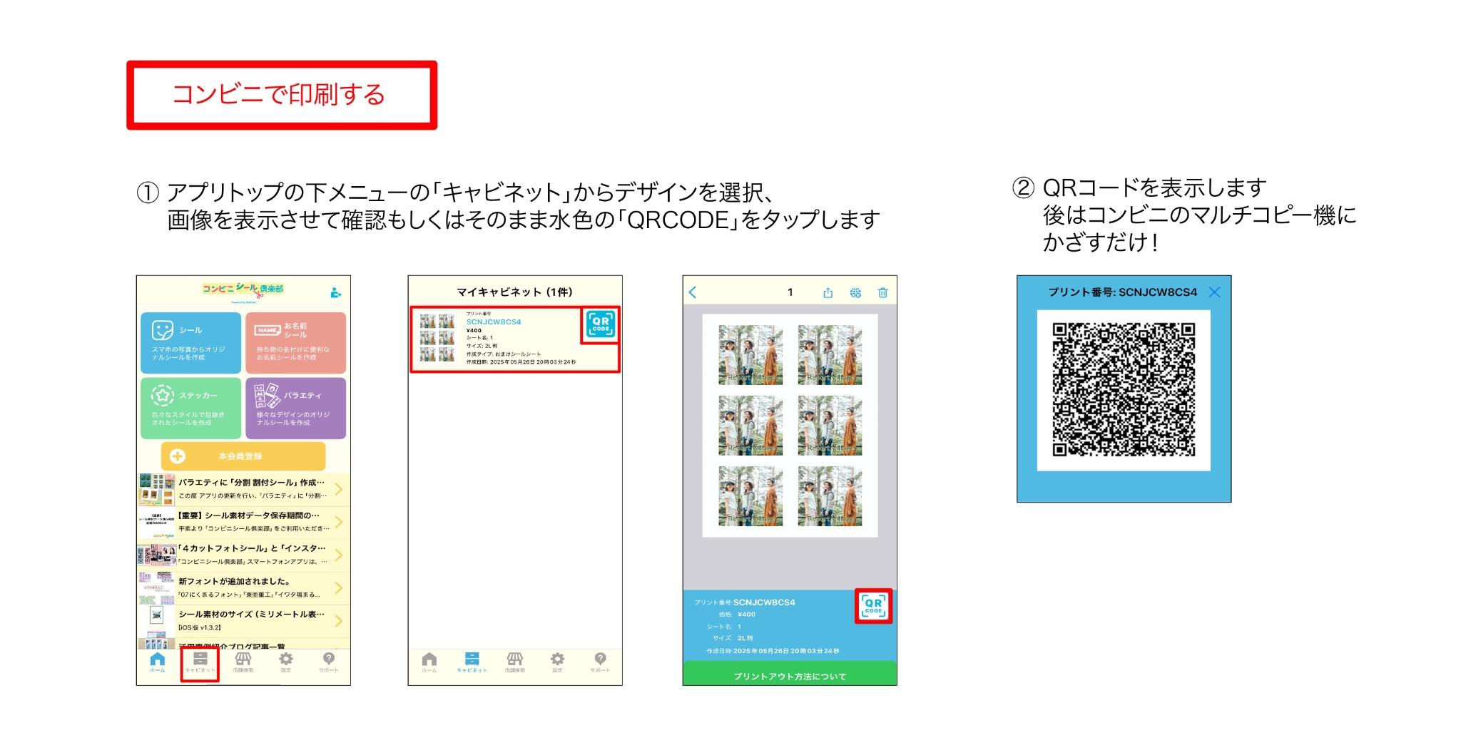 そのQRコードをコンビニのマルチコピー機にかざすと印刷ができます♪