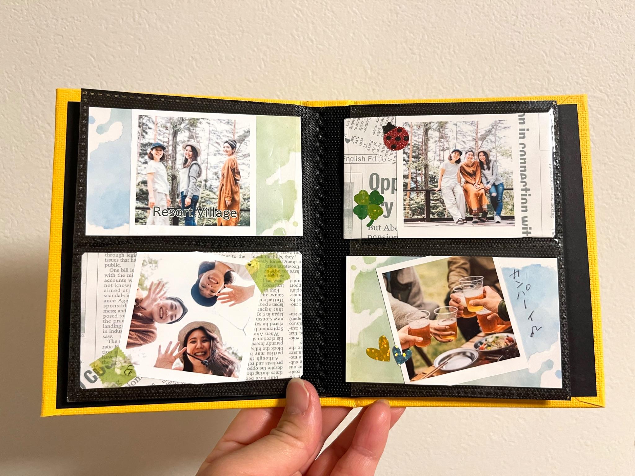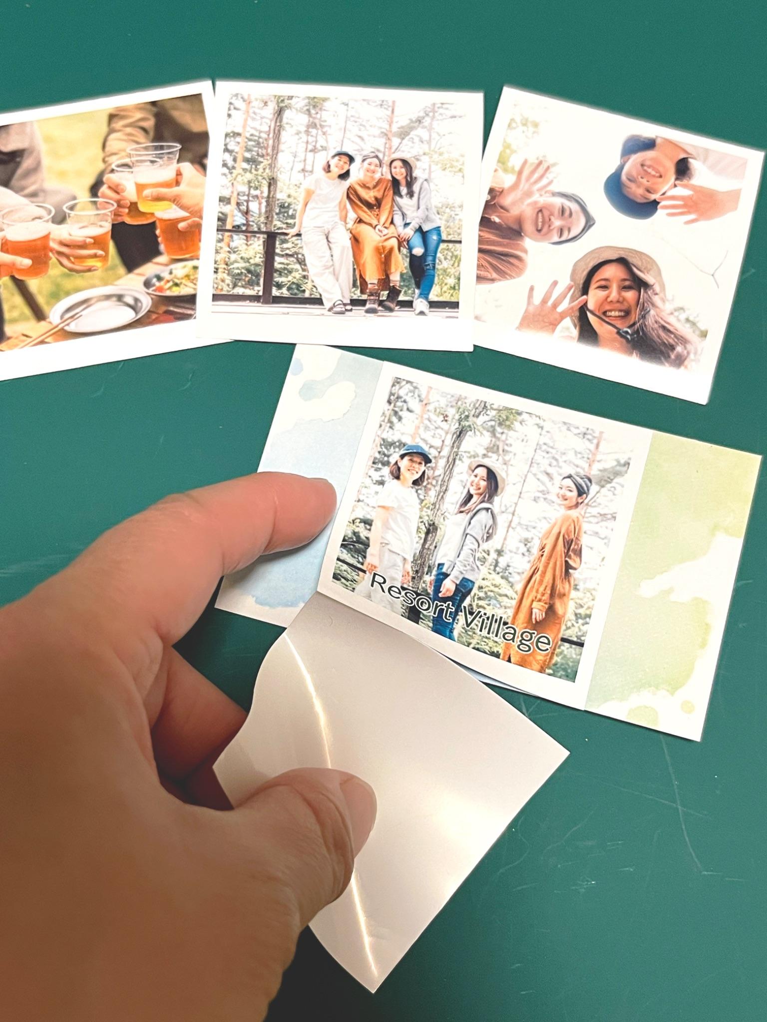 今回、お友達と日帰りキャンプに行った時に撮影した写真を使ってシールを作りました。せっかくなので、おまけシールサイズを使ったミニアルバムを作ってみたいと思います!