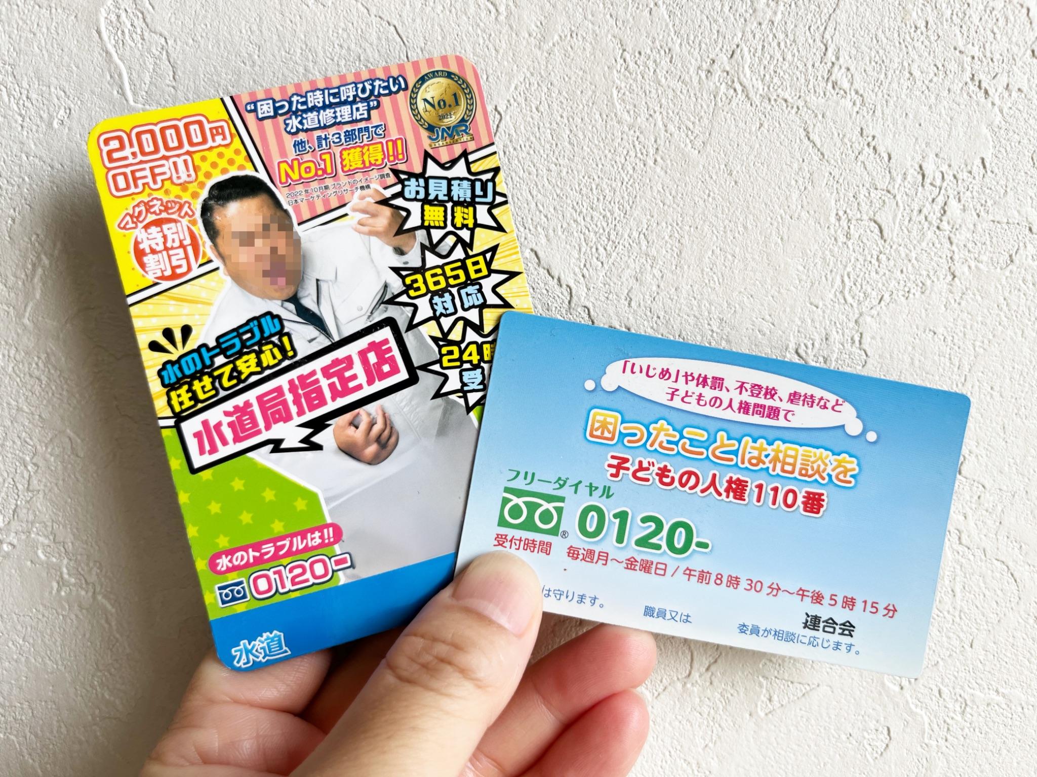 プリントした印刷シートは、マグネットの大きさに合わせてカットします。(実際に我が家のポストに入っていたマグネットチラシを活用しました♪)