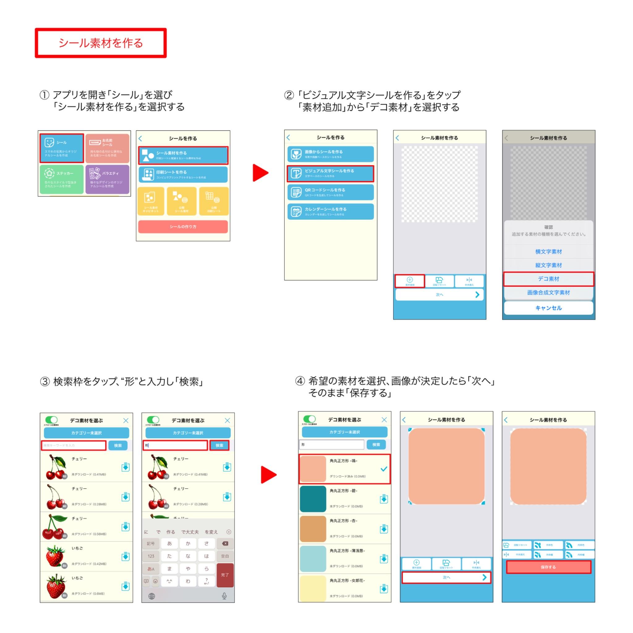 素材のみで作る場合は、最初にシール素材を作成する必要があるため、通常とは少し手順が異なりますのでご注意ください☺︎