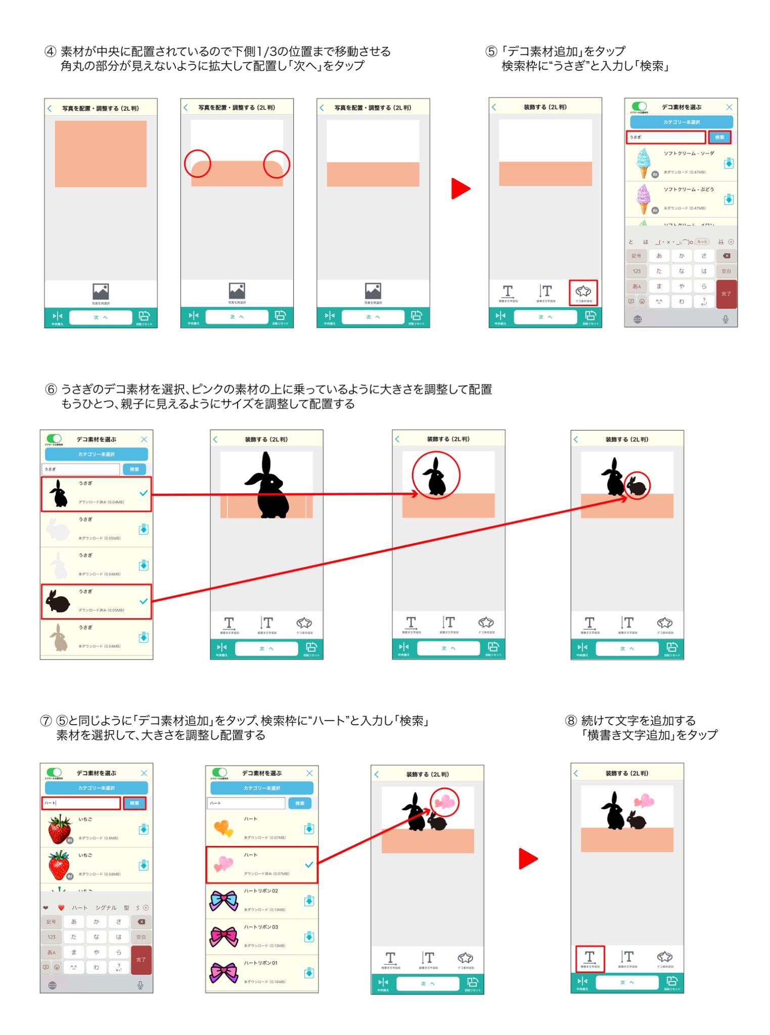 今回は“うさぎ”と入力して素材を検索し、親子のイメージに合わせて2種類の“うさぎ”を大きさを変えて配置します。