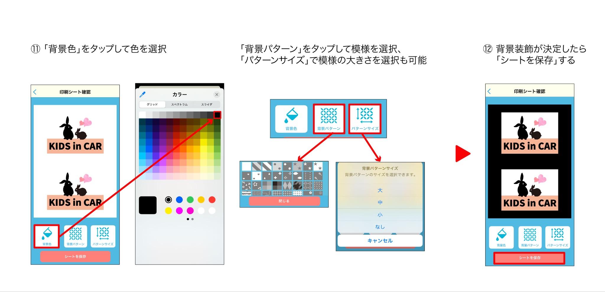 背景は「色」「パターン」「パターンのサイズ」から選択でき、オリジナルの背景が作れるのも魅力の1つです♪
