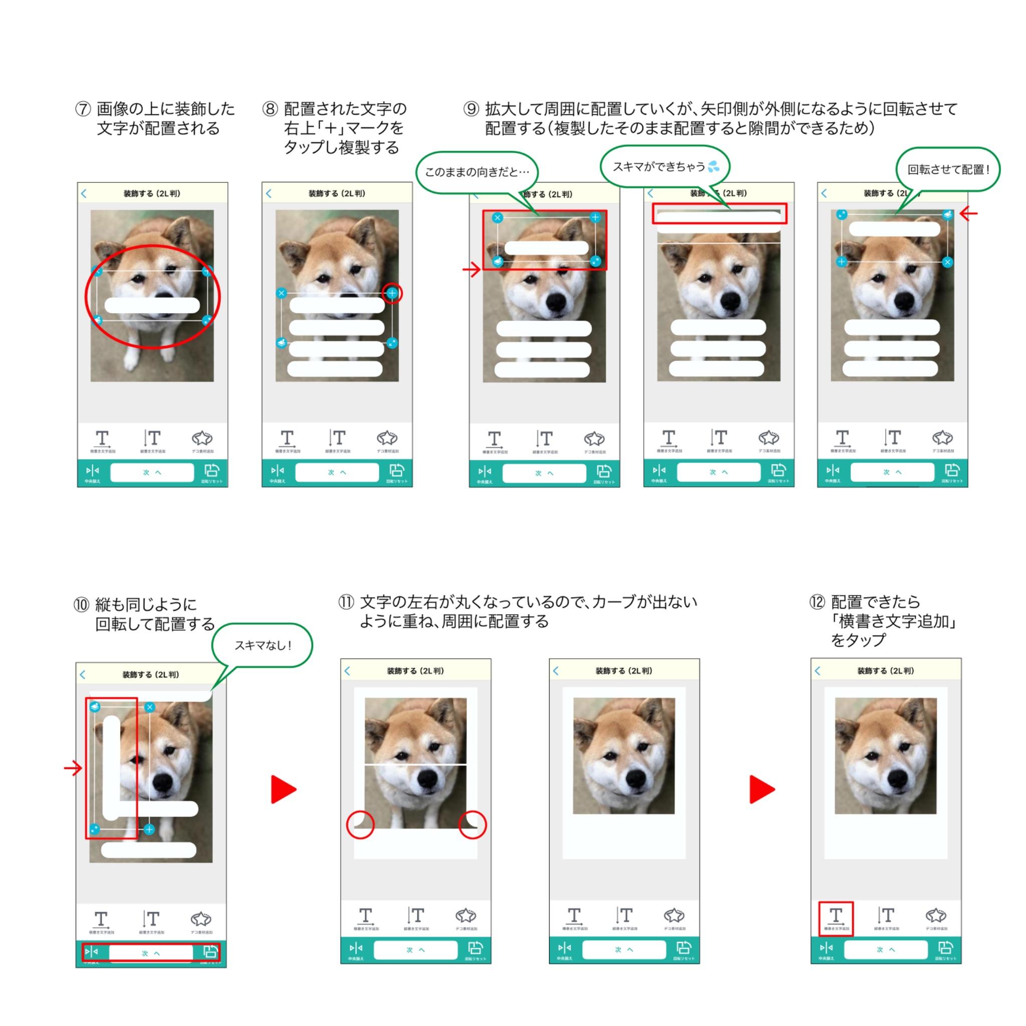 画像の配置だけではなく、文字やデコ素材を入れて画像を装飾することも可能です。