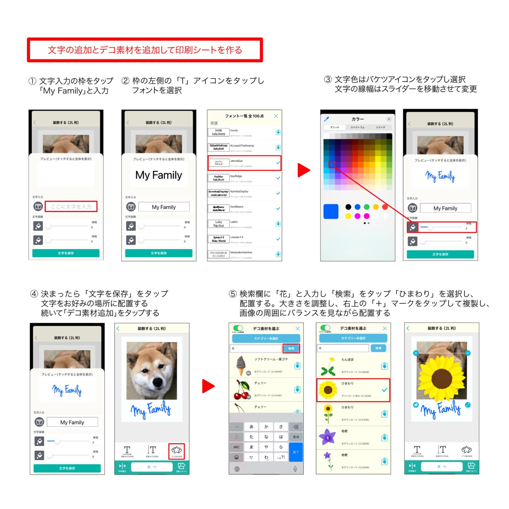 ③文字の追加とデコ素材を追加して印刷シートを作る