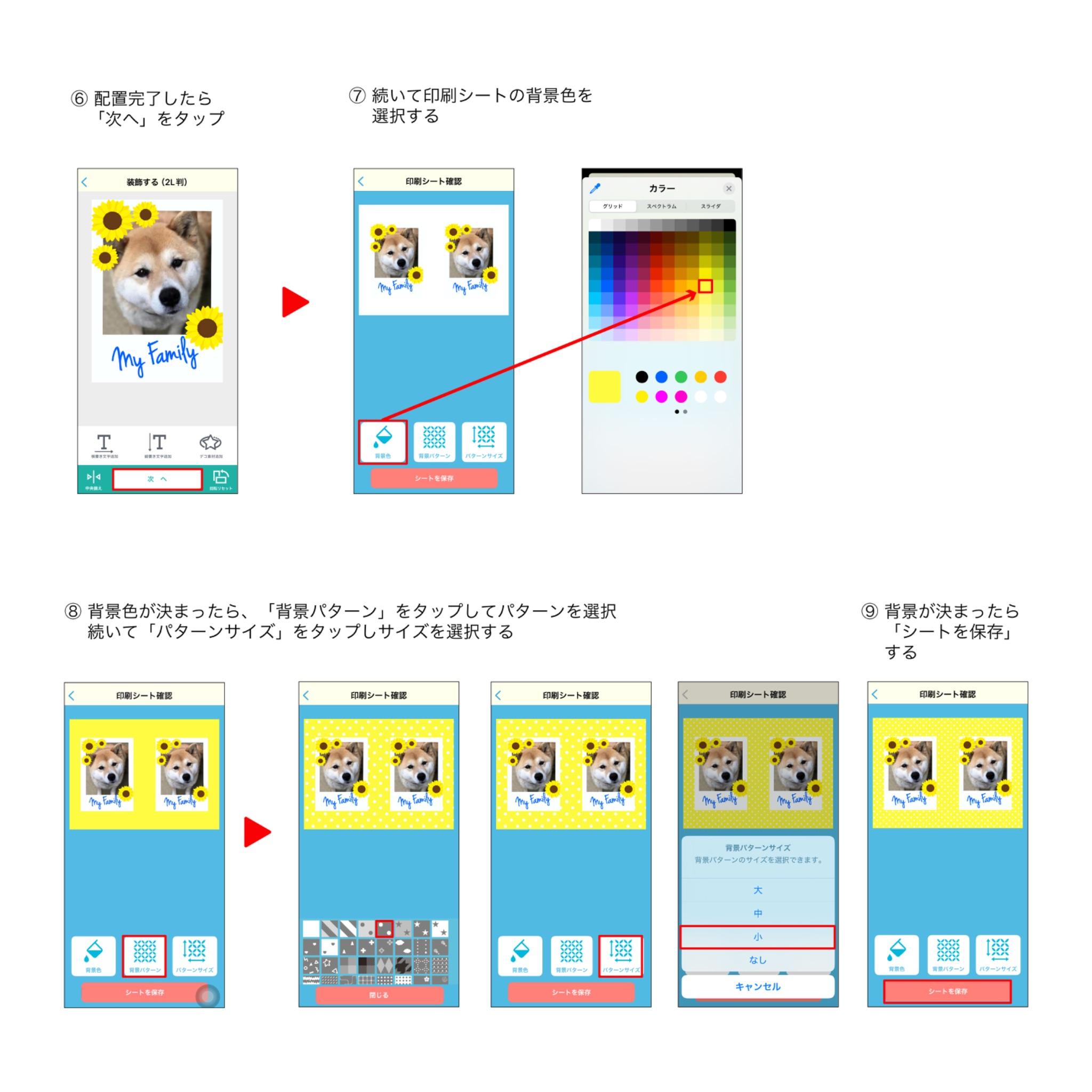 背景は「色」「パターン」「パターンのサイズ」から選択でき、オリジナルの背景が作れるのも魅力の1つです♪