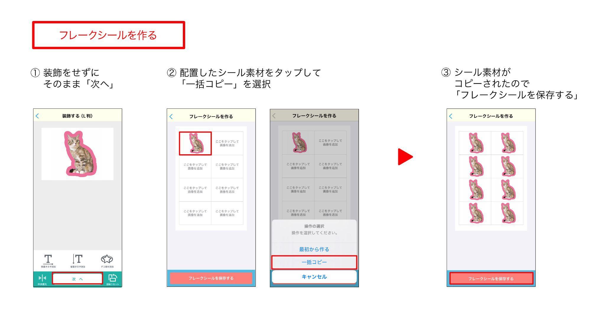 コピーされたことを確認して「フレークシールを保存する」をタップします。